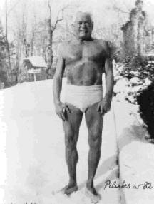As a Pilates teacher, I have one of the best role models to follow in terms of expectations for older age. It would seem that Joseph Pilates did his best work form the age of 50 onwards, and remained strong and vigorous until his death. I cannot find a clip to include here but the “Romana’s Pilates Ultimate Mat Challenge” DVD includes footage of Romana Kryzanowska, aged 82 (I think) doing the hanging on the Cadillac and describing it as her “daily loosener up-er”. We know what’s possible – as a profession we have excellent examples – and yet, how many of us (Pilates teachers) have been trained to think that the Roll Up, or the Roll Over are contraindicated for ‘the elderly’? I’m not advocating a lack of care or caution, but wondering if we have an instinct to set the bar too low (Yes, I’ve been here before). I know that for someone with osteoporosis, to collapse in their spine as they go into the Roll Up, or Roll Over, could be dangerous, but we wouldn’t teach anyone to collapse in their spine in a Roll Up, would we? Because that’s not what Pilates is about. So whilst it may not be the best idea to introduce that exercise to an older person in their first session, or even in their tenth session, isn’t their the possibility that, in time, the eccentric control that this exercise requires could be just the kind of stress on their bones that will make them stronger.